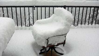 Snow storm came during the night and decided to have a seat.