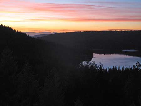 Sunset over Scotts Flat Lake from my deck 2/3/11 In the background is the Coast Range