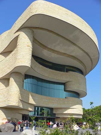 Then, basically across the street we find the National Museum of American Indian, the 18th Smithsonian museum, opened in 2004, with a beautiful exterior design, reminding me of rock formations in the southwest of America, and even inside, everything is rounded, I don’t think there was a straight wall in the whole place.