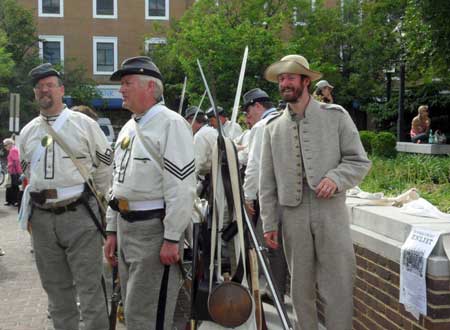 After a late sleep and a relaxing morning, Pat drove us to Alexandria, very close to Washington, but on the Virginia side of the Potomac River. It was a very quaint, very touristy town (reminded us of Nevada City), filed this day with Anniversary Celebrations of the Civil War, 150 years ago.