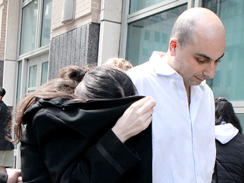 Joyce Soudry wore a gray Boss scarf when she appeared in court with her hubby, who had on a $200 Robert Graham shirt embroidered with the slogan, “Knowledge, wisdom, truth.”